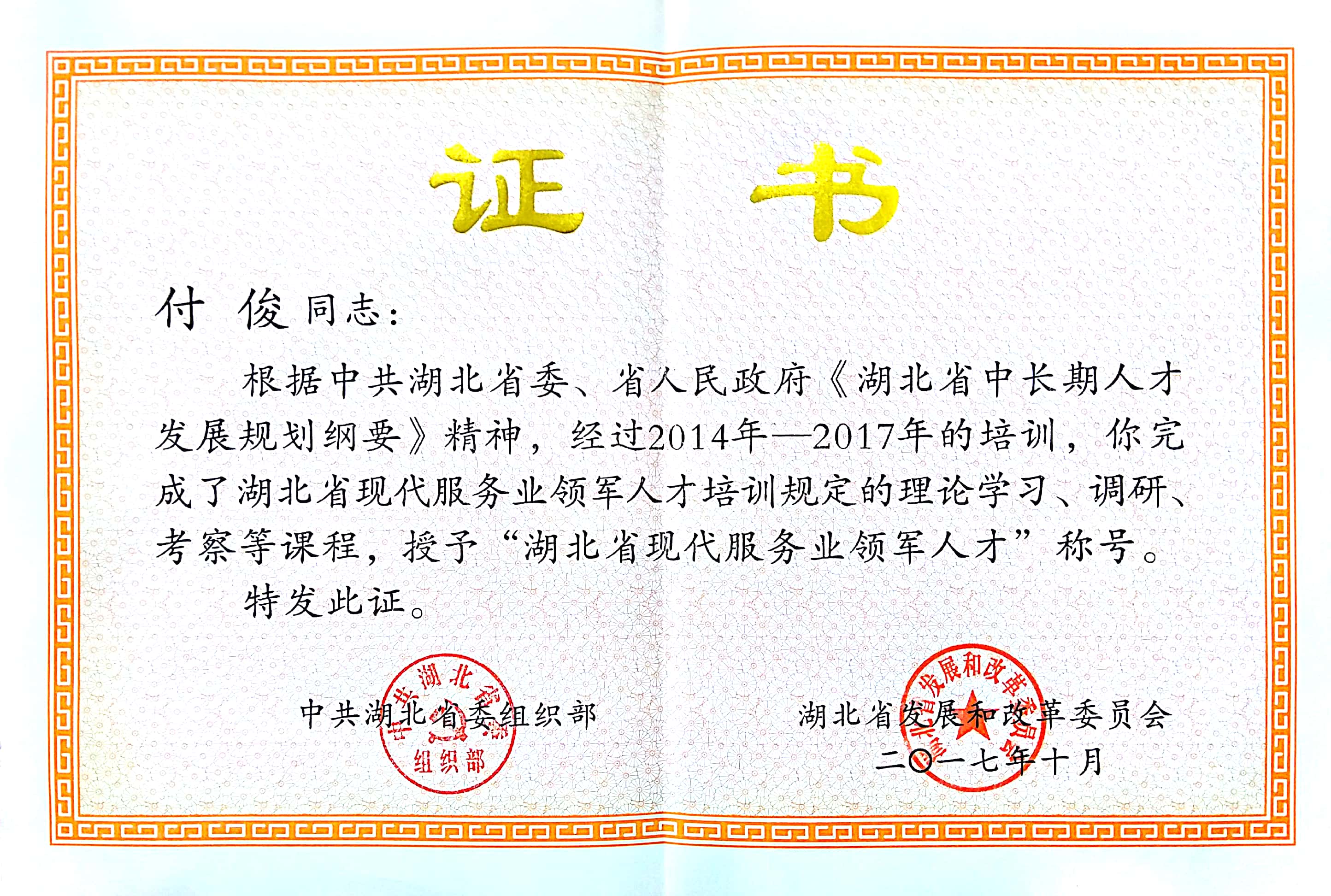 2017湖北省現(xiàn)代服務(wù)業(yè)領(lǐng)軍人才(付?。?/p>