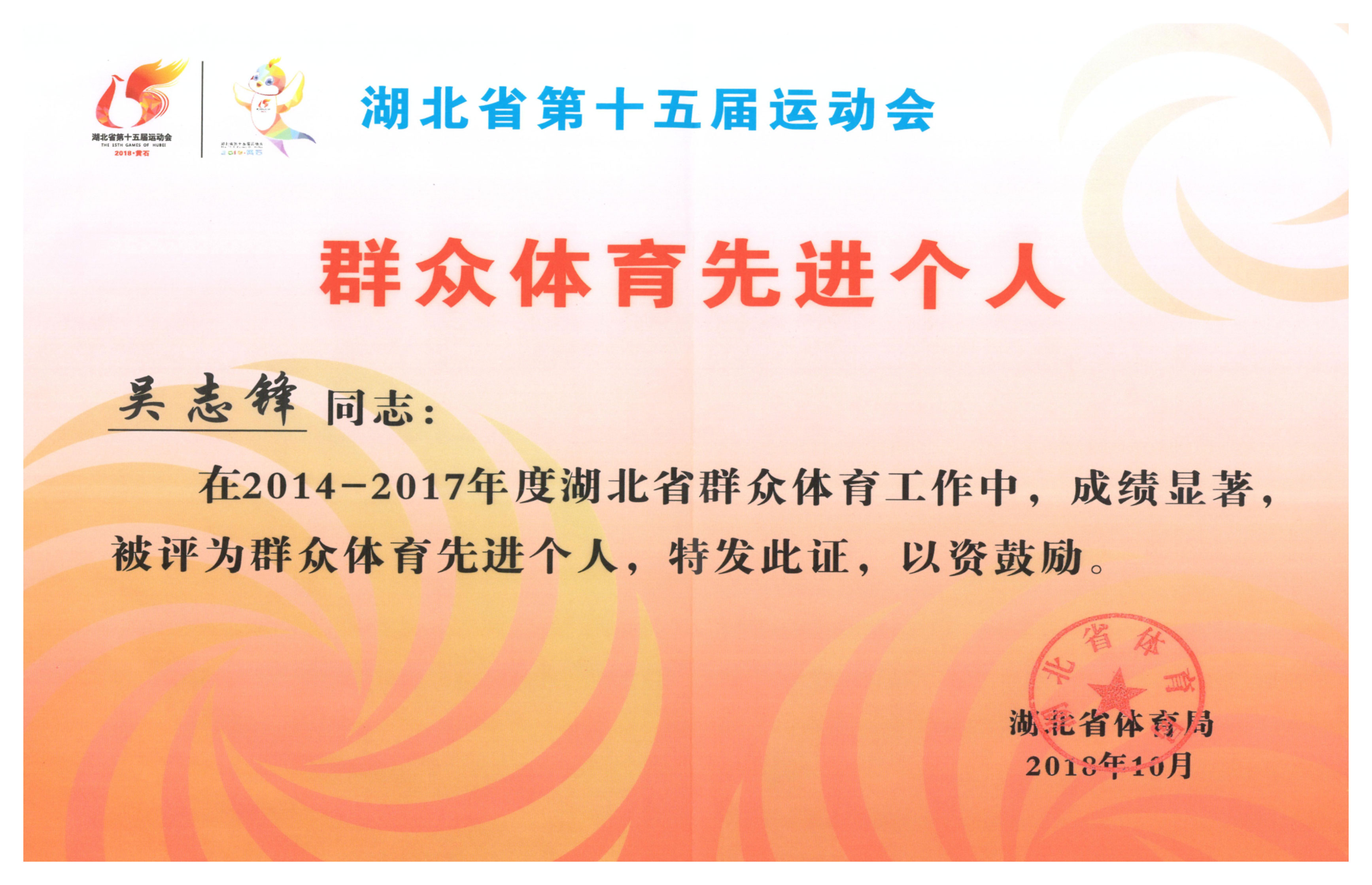 2018湖北省群眾體育先進(jìn)個(gè)人(吳志鋒)