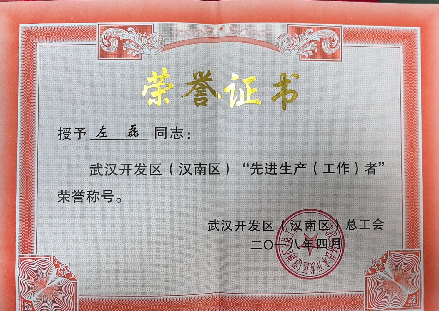 2018武漢經(jīng)開(kāi)區(qū)先進(jìn)生產(chǎn)工作者(左磊)