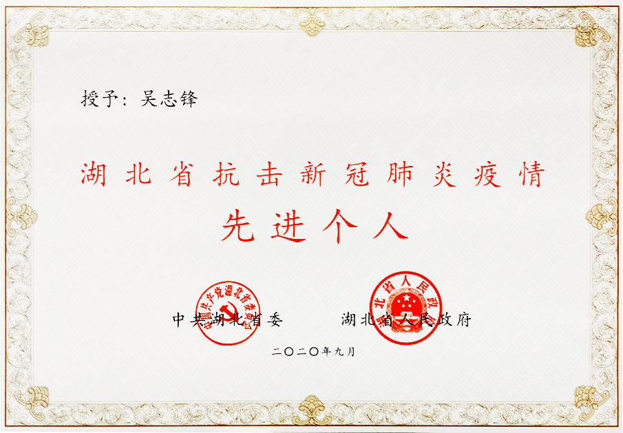 2020湖北省抗疫先進(jìn)個(gè)人(吳志鋒)